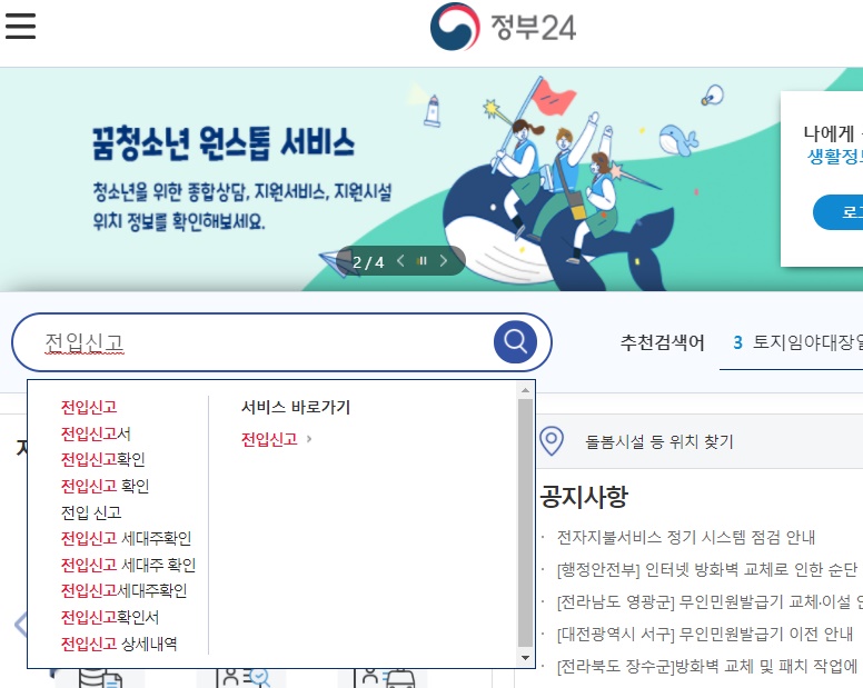 전입신고 | 민원안내 및 신청 | 민원24 | 정부24